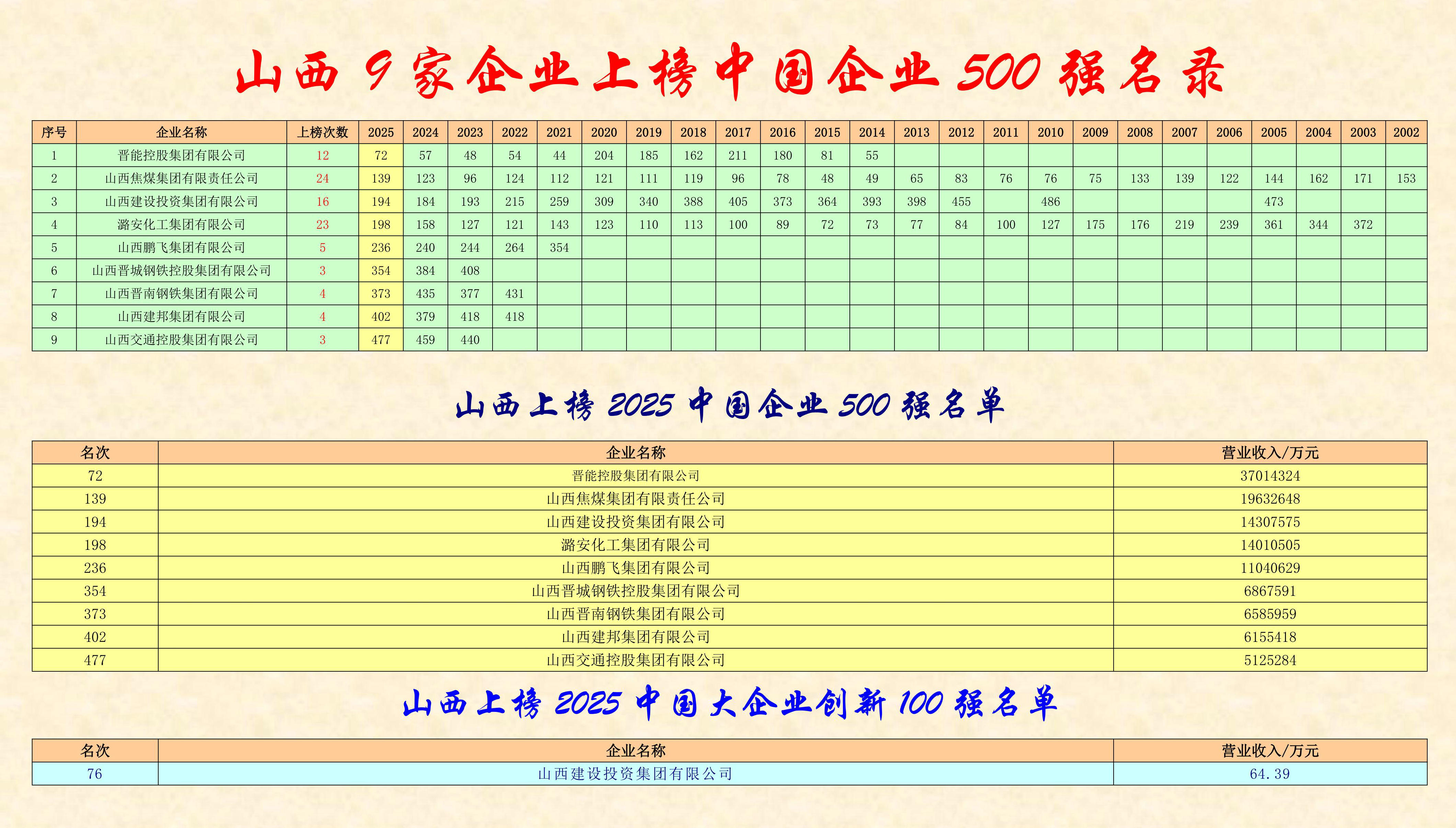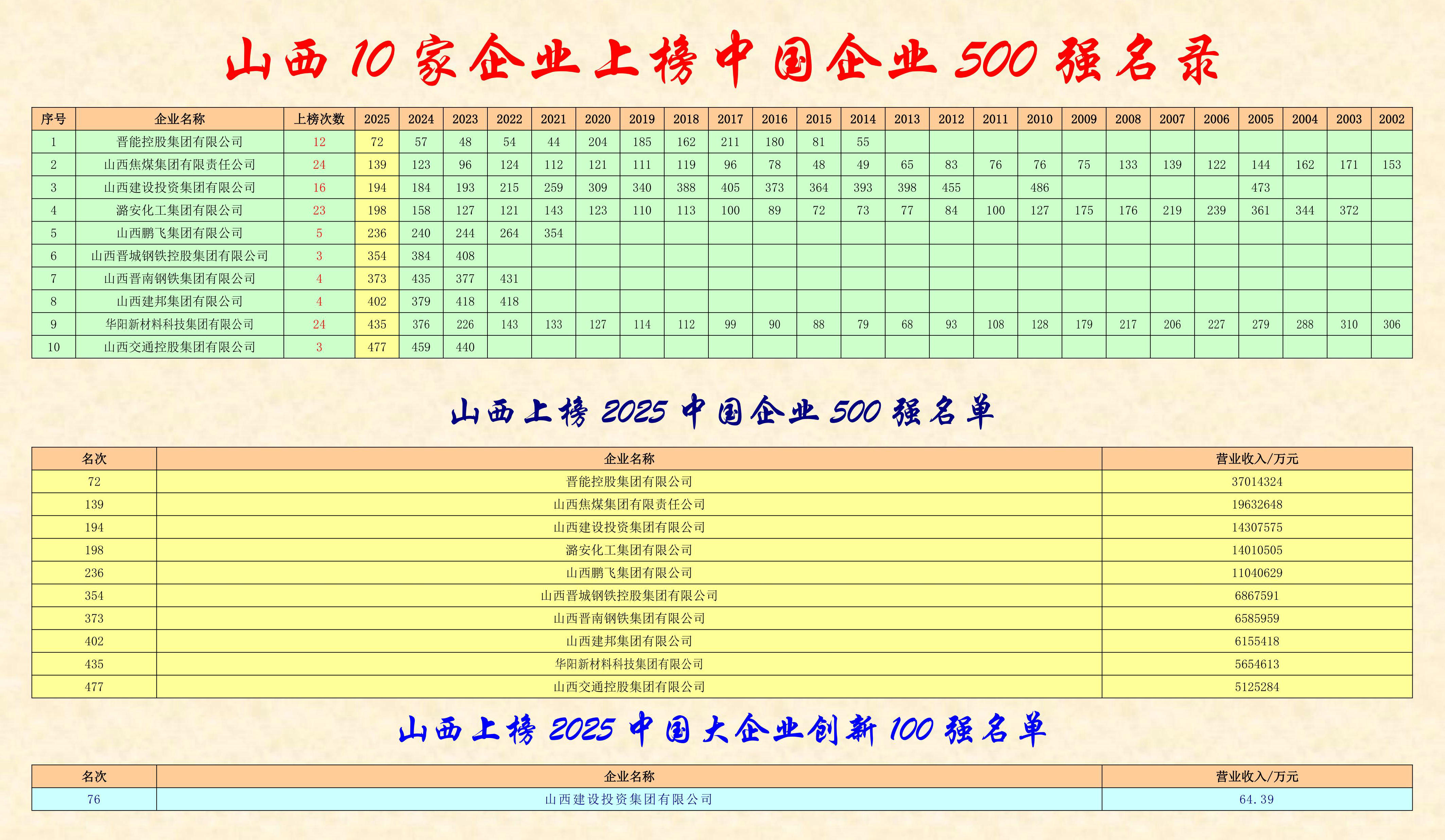 山西上榜2025中國大企業(yè)創(chuàng)新100強名單