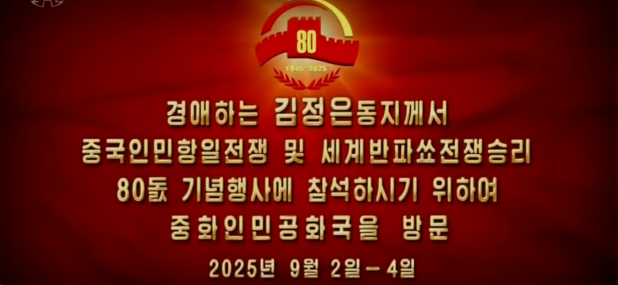 1 敬愛的 金正恩同志為了出席中國人民抗日戰(zhàn)爭及世界反法西斯戰(zhàn)爭勝利80周年紀(jì)念活動,您將訪問中華人民共和國 [2025.08.28.]